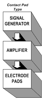 ELECTRODE PADS – these commercially available, disposable or reusable, contact pads are specifically designed to very efficiently transfer small voltages and micro-currents into the tissues when applied to the body. It is my understanding, studies have shown them to be approximately 10 times as efficient in transferring energy as a hand-hold type device. Other examples of electrodes commonly available, materials which have been substituted for quality electrodes with probably lesser results, are copper and/or stainless steel pipes or cylinders, metal plates, even water filled pie pans with alligator clip leads. I personally prefer the quality and versatility of direct and focused application of medical or sports grade reusable adhesive electrode pads.