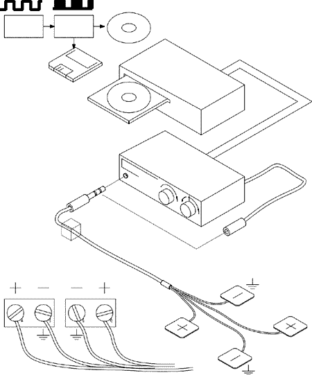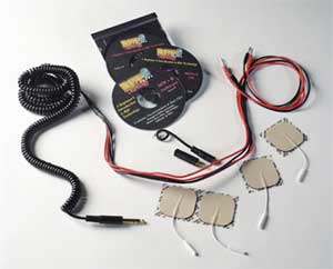 | This setup represents a very modest setup within the grasp of almost any prospective experimenter. In most cases, the experimenter will already have most of what is needed except for the specialized cable and conductive electrode pads, similar to what is shown below. Both can be easily obtained and/or constructed by the user with readily available materials. The Device Construction area will go into more detail on this. A purchasable equivalent is available in the RIFEforLIFE.com website in the form of the “Experimenter Kit” |