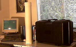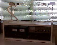 | Shown Here is the simple yet durable tube mount. the mount is constructed very simply from a piece of PVC tubing and a fiberglass "arrow (as used in archery). The Arrow shaft is quite inexpensive yet light weight and almost indestructible. Being non metallic, and non conductive, there is not a problem of inductance or reaction with the RF field. |